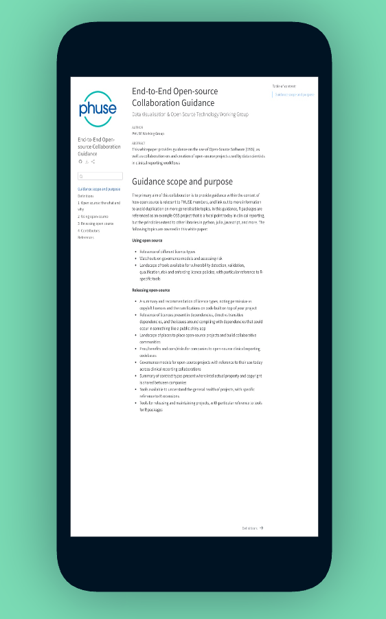 The guidance is a quarto book hosted on the Github PHUSE organisation.